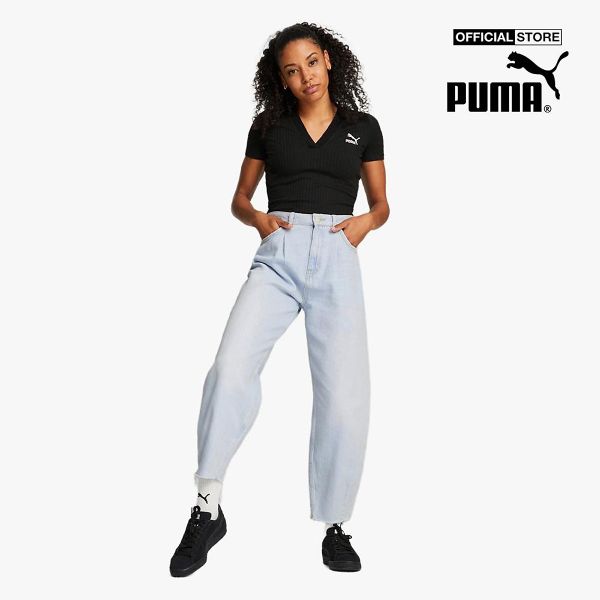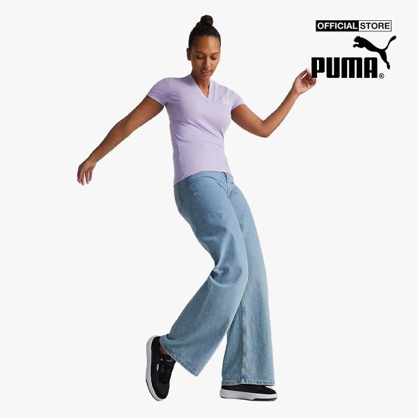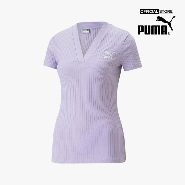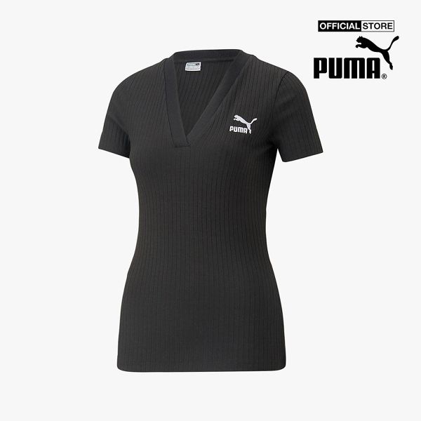 PUMA - Áo thun nữ cổ V tay ngắn Classics Ribbed538054