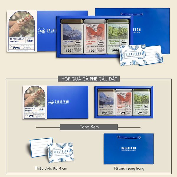 Hộp Quà Cà Phê Cầu Đất Dalat Farm - Arabica - Robusta - Phin (Dạng bột)